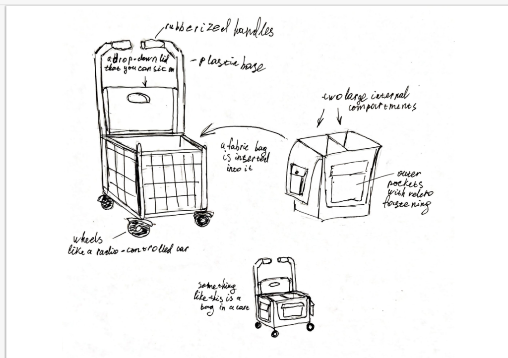 Next, I remembered our grandmothers, who walk with a heavy bag and think where to sit. Therefore, it was important to add the opportunity to sit on the bag itself.