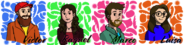 Meet us: Luísa Lampert, Marco Xavier , Raquel Bonini and Victor Frainer! 💙💚🩷🧡
