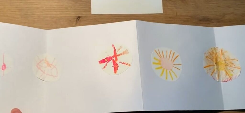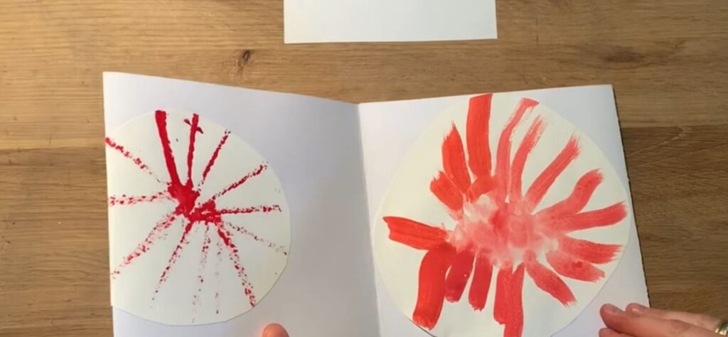 Materials: Sheets of paper, wax crayons, upcycled tools such as brushes and sponges of all kinds, tempera paint.