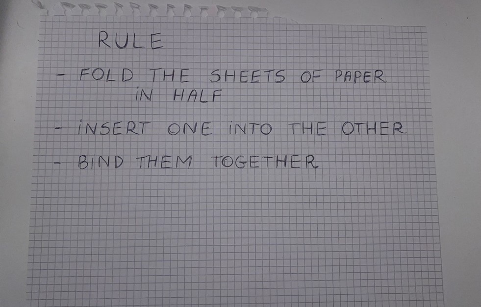 -4 A1-sized sheets folded in half and attached with masking tape.