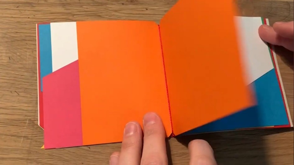 Materials: Colored cardstock, rounded-tip scissors, binding thread.
