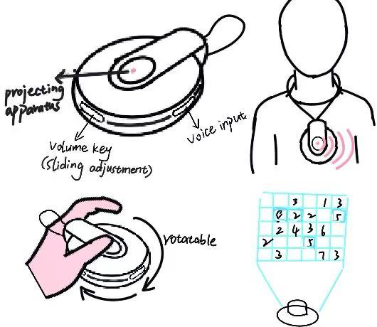 The device adopts a “voice + tactile + visual” triple feedback system: itvibrates slightly when receiving calls from family members; the projectioninterface uses high-contrast colors and large fonts, with support for text-to-speech functionality. All features can be activated with just “yoice commands+ a physical home button” (e.g., press the home button and say “Video callwith my granddaughter” to automatically launch the projection and start thecall). This design eliminates complex buttons and multi-step operations,alleviating the memory burden on elderly users