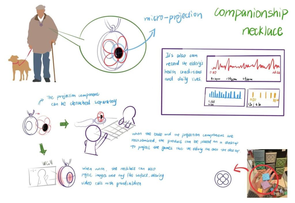 Whether it is the solo fun brought by board game projection, the projection interaction during calls with grandchildren, or the family’s concern behind health recording, it is essentially a response to the elderly’s “emotional needs”. It not only prevents them from being “marginalized” due to the complexity of technological products but also strengthens their emotional connection with the family through functional design, making the necklace a “warm intelligent carrier”.