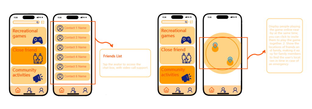 Based on the customer’s needs, we have provided 9 design concepts. These concepts, developed from diverse perspectives and directions, aim to meet the core requirements proposed by the customer—alleviating the elderly’s loneliness, preventing dementia, and enabling senior gaming socialization. We have chosen various smart devices as the carrier instead of merely developing software, and through these devices, we implement emotional functions such as social games to alleviate the elderly’s loneliness; at the same time, it allows the elderly, adults, and children to jointly experience classic games and interactions anytime, anywhere. Some products also integrate video call functionality, perfectly combining entertainment fun with family intimacy.