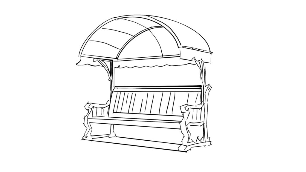 3. For the third bench, I designed it in a retro style and added European elements, such as the design the backrest and the sunshade canopy. I think Italian elderly people in Europe must be familiar with and fond of European retro designs.