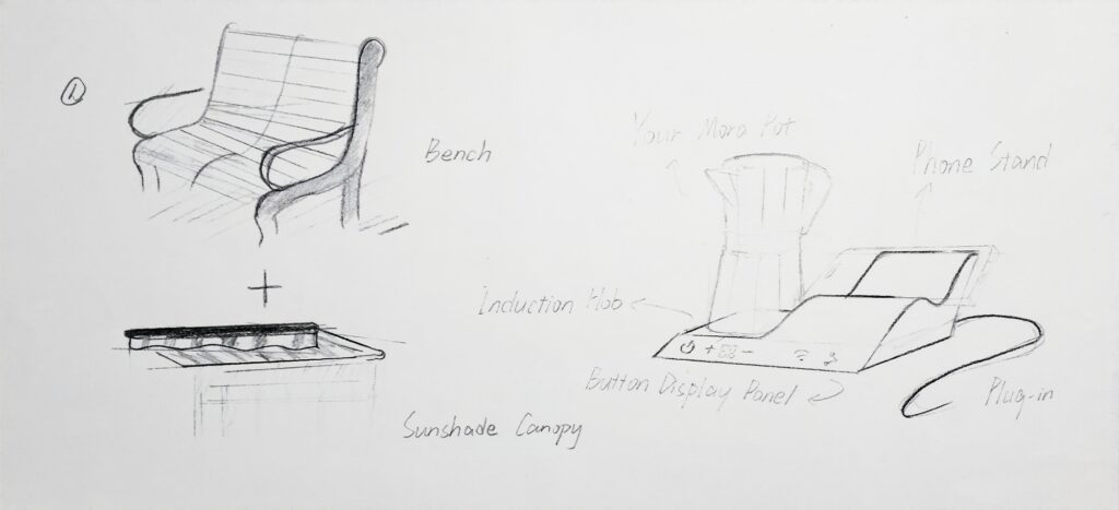 When the elderly place their mobile phones on the bench stand, they will naturally think of the warm scenes of getting along with relatives and friends in the community, reducing the sense of unfamiliarity with smart products. It makes the act of making coffee associated with the emotional experience of chatting with friends while sitting on the bench, so as to achieve the core design goal of “connecting social interactions through coffee”.