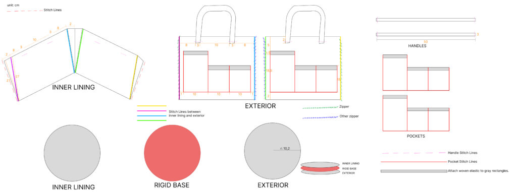 Finally, to address stability on the ground: To prevent the bag from tipping over on uneven soil, we implemented a reinforced “sandwich” base construction. A rigid board is inserted between the inner and outer layers, creating a flat, waterproof, and impact-resistant foundation.