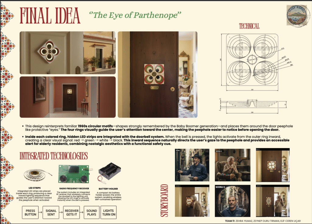 Hi everyone, as Team 11 here is our final design, The Eye of Parthenope! We learned a lot about culture in Naples and enjoyed designing so much a long the way.