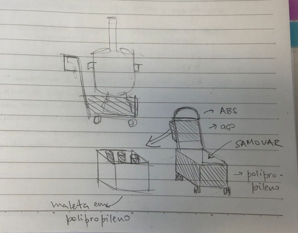 This proposal is to design a functional and portable product, consisting of a small wheeled trolley and a modular storage case that holds all accessories required for the ritual (tea, sugar, cups, heating tools, towels, and other traditional elements). The idea is to make it easy to transport the samovar to different places — parks, cultural gatherings, tourism events, and travel situations — while keeping all items organized and protected. The focus is on combining tradition with mobility, allowing the ritual to happen anywhere without losing its authenticity.