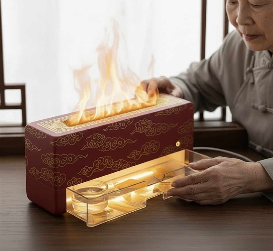 3. Reinsert the drawer until the magnetic sensor clicks into place, the sensor will instensify the LED light mimicking the fire.